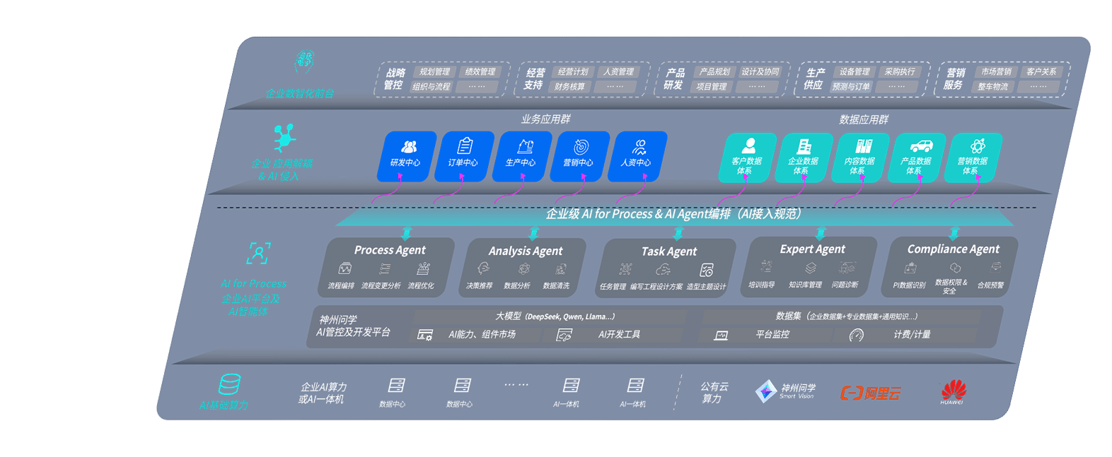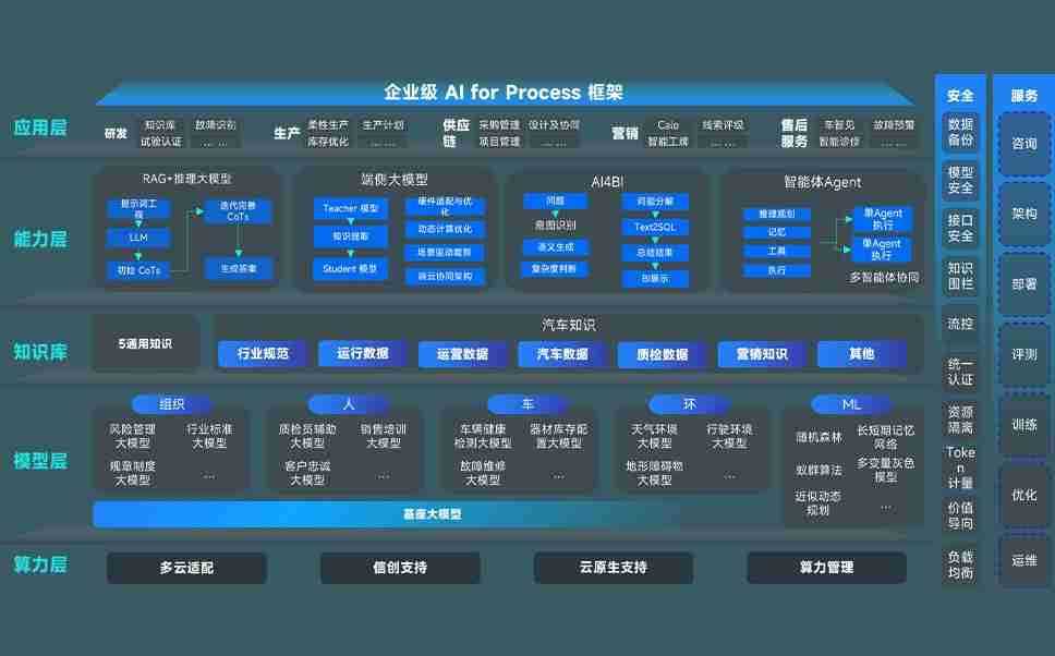 端到端的一站式AI工作空间深度融合了从企业战略规划到日常经营的全流程业务板块,,,,定向解决车企内部领域多、、、、部门多、、、链条长、、、场景碎片化等难题,,支持车企快速构建以AI为核心的生产力写作体系,,实现任务执行与AI能力的无缝集成与交互